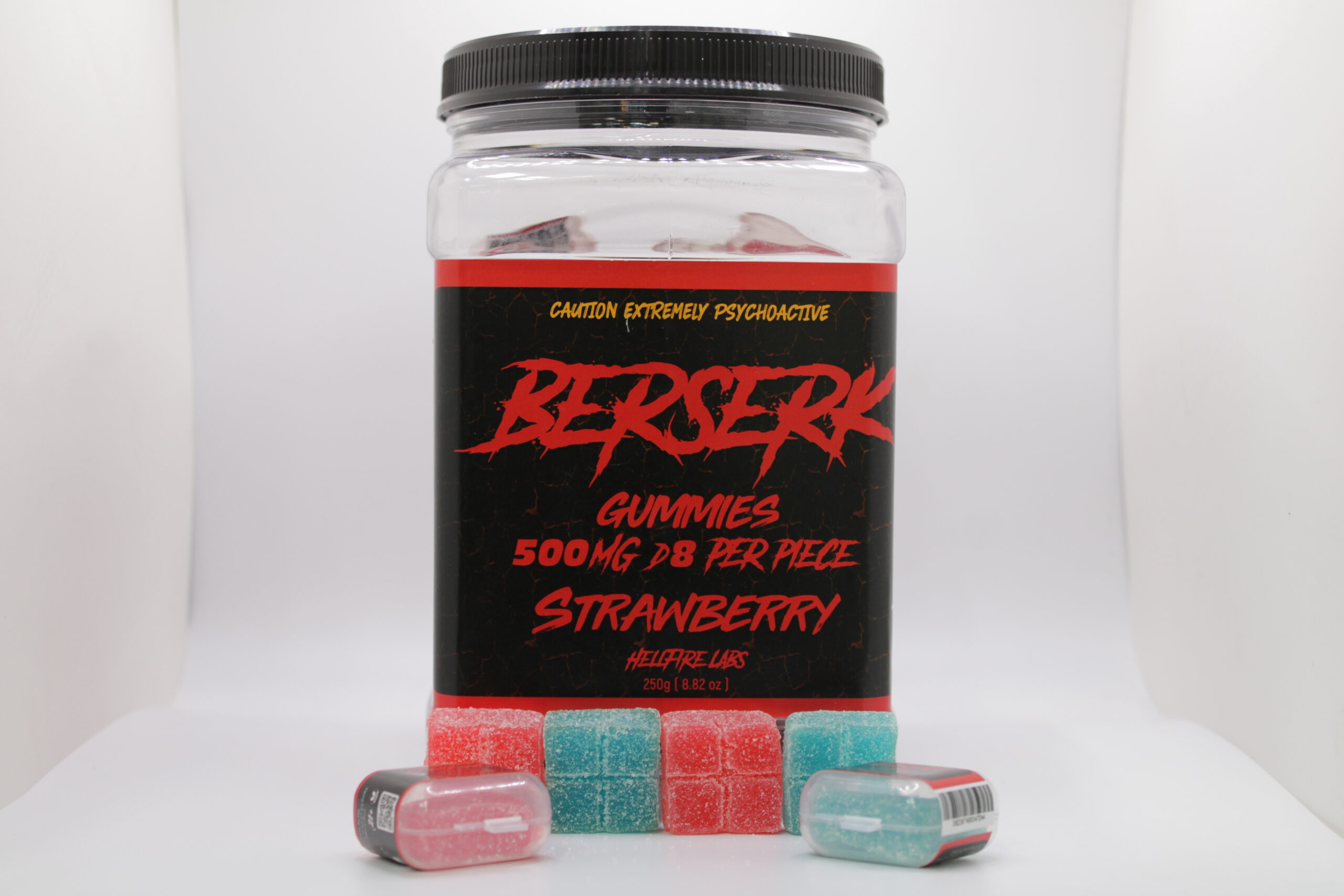 Berserk Gummies 500mg D8 deliver a bold, potent experience in a convenient 50-count jar. Each gummy is infused for consistent strength and smooth effects, available in Strawberry and Blue Razz flavors. Designed for users seeking strong potency with a sweet, easy-to-enjoy format.